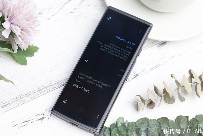 讯飞翻译机4.0在硬件方面采用一块5.05英寸高清定制翻译屏,22:9的修长比例也提供了同时给对话双方显示翻译内容的足够空间,修长的机身握持操作更舒服,整机尺寸长140.6mm、宽56.6mm、厚10.4mm,仅有129g重,在需要进行语音翻译时拿起来非常顺手。